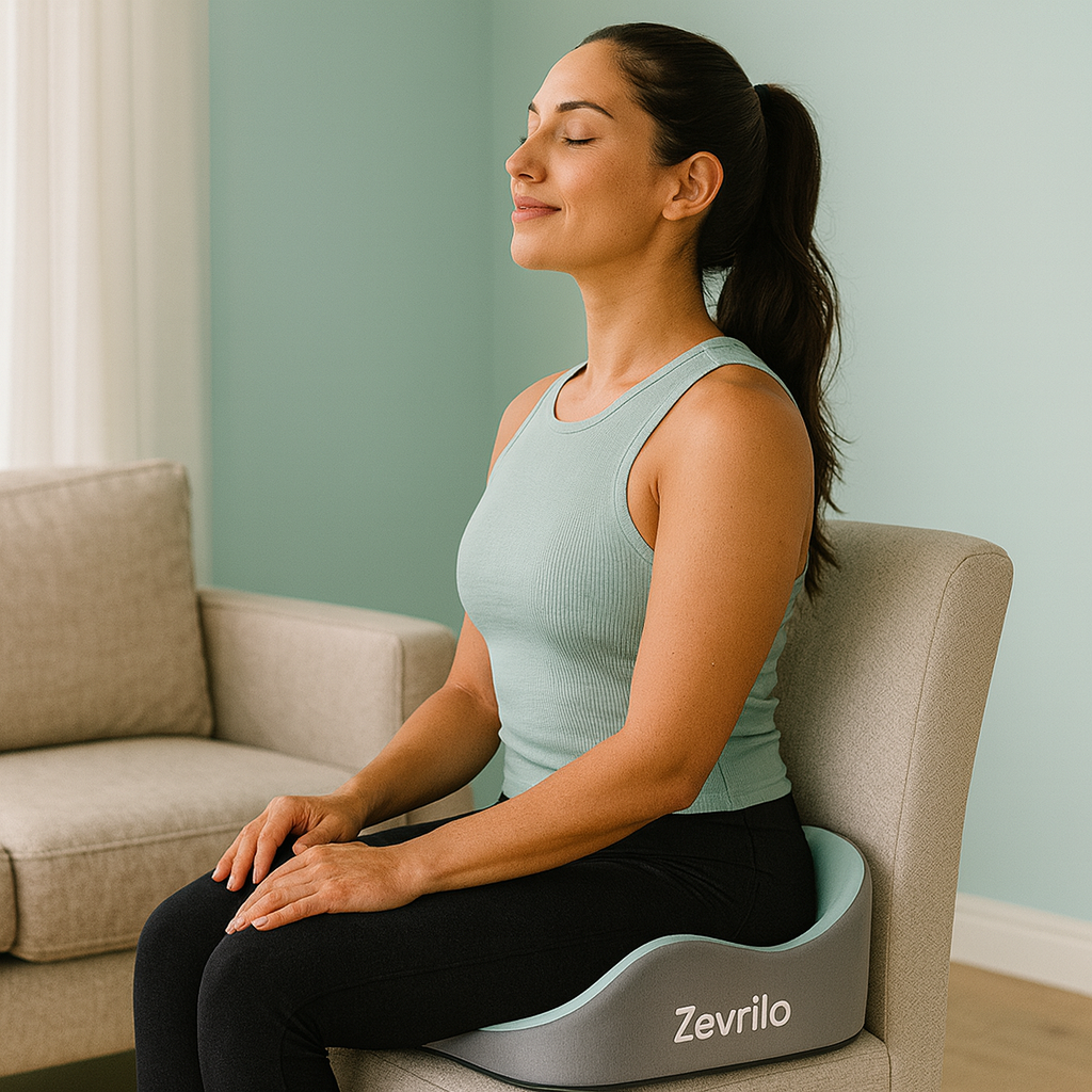 Experience long-lasting comfort and tailbone relief with the Zevrilo Comfort Pro ergonomic seat cushion. Perfect for office chairs, gaming, or long drives.